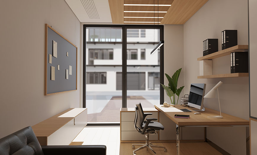 Gebäudeabschnitte können durch Schleusen von einander getrennt werden und der Zutritt zu jedem Raum nach Bedarf gesteuert werden. Alle Räume verfügen über eine vollständige und exklusive Inneneinrichtung, die eine angenehme Arbeitsatmosphäre schafft.