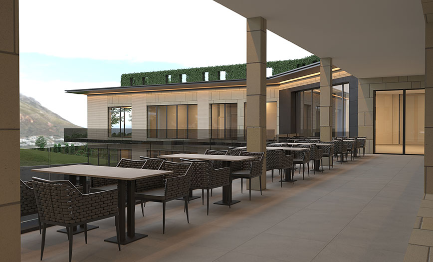 Die Restaurantküche ist auf Effizienz und Flexibilität ausgelegt und kann dank der vorgesehenen Kühl- und Gefrieranlagen bis zu 400 Mahlzeiten pro Tag vorbereiten. Somit sind ausreichend Kapazitäten vorhanden, um auch das Catering für größere Veranstaltungen zu bewältigen. Ein weiterer Vorteil: Durch das Schockfrosten der vorgekochten Gerichte, können diese auch als Tiefkühlware verkauft werden und stellen eine gesunde Alternative zu industriell verarbeiteten Fast-Food-Gerichten für zu Hause dar. Bioabfälle wie Essensreste werden durch ein Entsorgungssystem automatisch zerkleinert, gepresst und getrocknet, was eine hygienische und geruchlose Entsorgung ermöglicht. Außerdem wird so aus dem Abfall ein wertvoller Kompostrohstoff.
